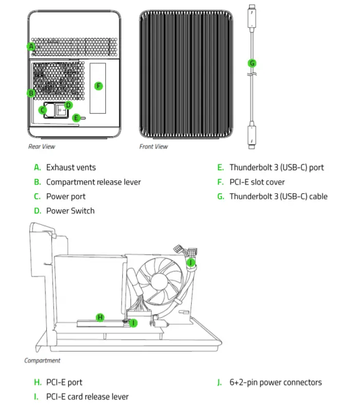 | Razer Core X Chroma Approx. Size | 6.61 in x 14.72 in x 9.06 in or 168 mm x 374 mm x 230 mm | |
