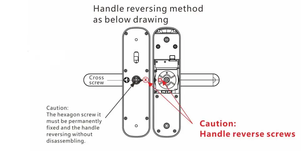 - After adjusting the direction of the handle, then install the cross screw to the original position and tighten it to complete the reversing.