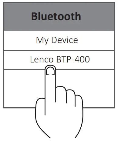 Find Lenco BTP-400 in your bluetooth list and select it.