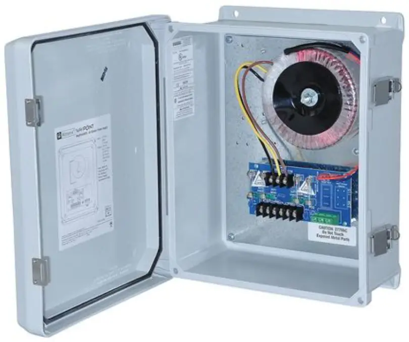 Altronix WayPoint307A Outdoor Power Supply provides 24VAC or 28VAC distributed via two outputs for powering CCTV cameras, heaters, and other video accessories.