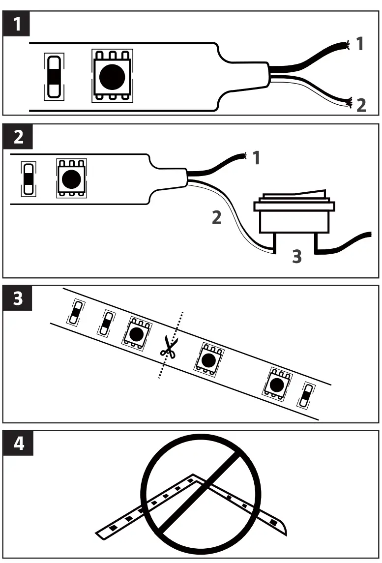 - Black/white wire 3. Constant 12 V (not ignition switch) Cut to the right length: the product must only be cut at the points marked with a scissor symbol.