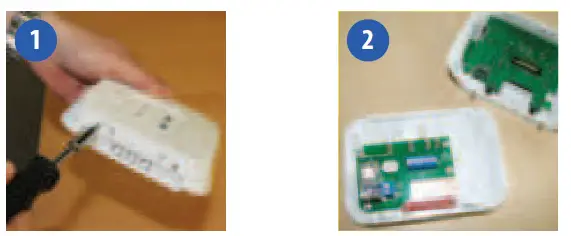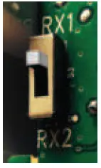 The unit can be switched internally switched to be used on two channels, RX1 (boiler receiver) or RX2 (single room receiver). Ensure the unit is not powered during setting of the RX1/RX2 slide switch.