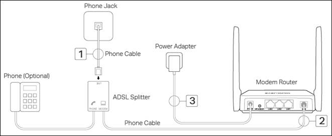Note: If you don’t need the phone service, just directly connect the modem router to the phone jack with the provided phone cable.
