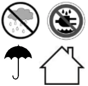 ![]() | Indoor use only. Keep this device away from rain, moisture, splashing and dripping liquids. |