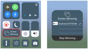 - Open the Screen Mirroring, and choose the correct SSID name.