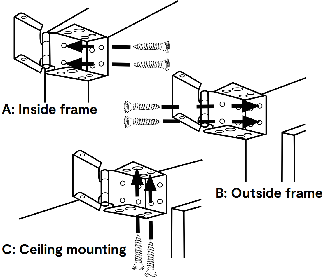 - To stop the blind from shaking, screw the hold down bracket clips onto the bottom of the window frame. Then clip the bottom rail of the blind into the hold down bracket.