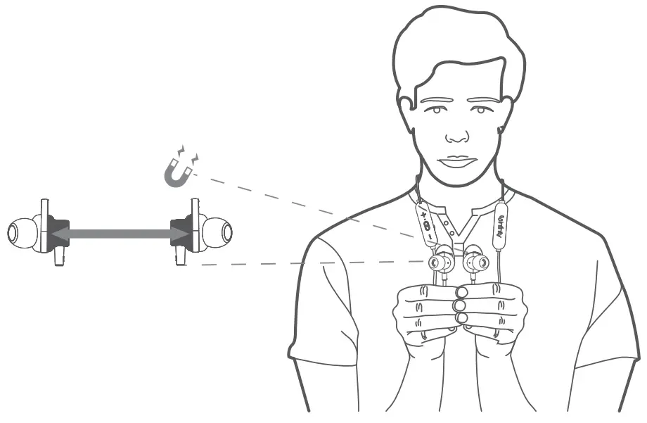 - Use the magnets/ When not in use, connect the earpieces in front of your neck using the magnets to avoid dangling.