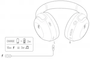 | Music playtime with BT on and ANC off: | 50 hrs |