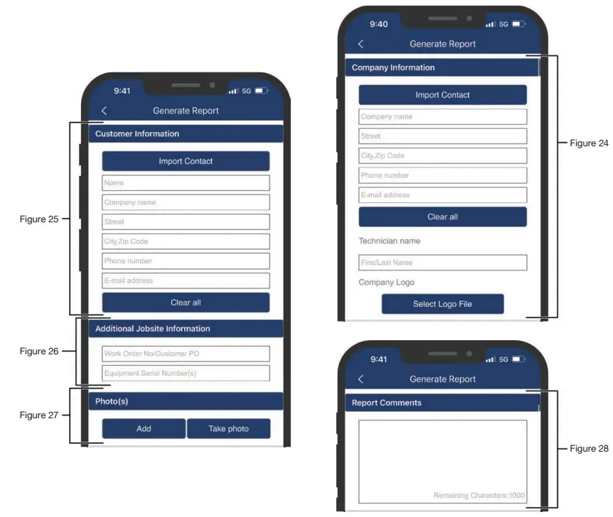 - When “Generate Report” is selected, the App enters the “Generate Report” section.