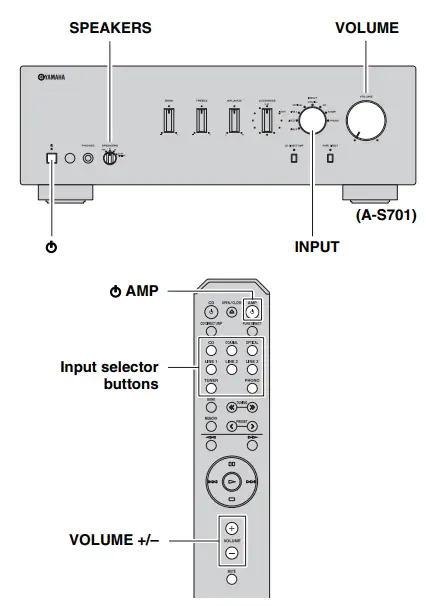 - Rotate the VOLUME control on the front panel fully counter-clockwise so as not to play sounds loud suddenly.