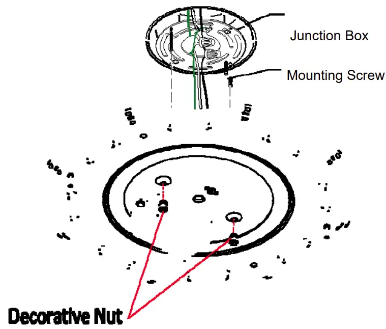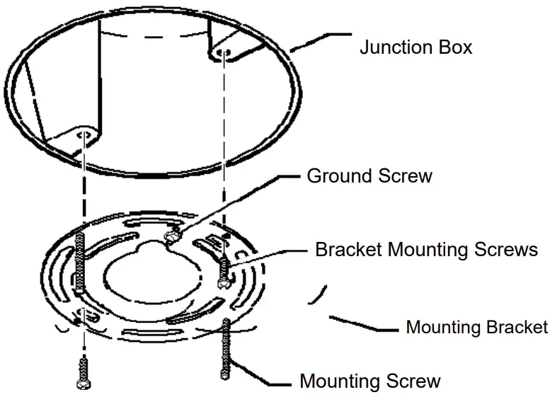 - Attach mounting bracket to junction box using the two mounting bracket screws (supplied). Tighten securely.
