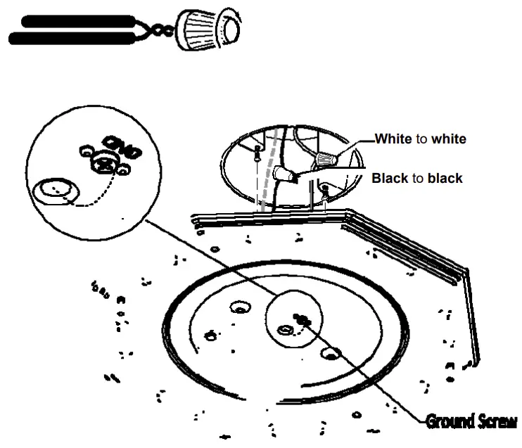 - Route the junction box ground wire through the large White holem next to the ground screw (GND). Attach the ground wire under the ground screw.