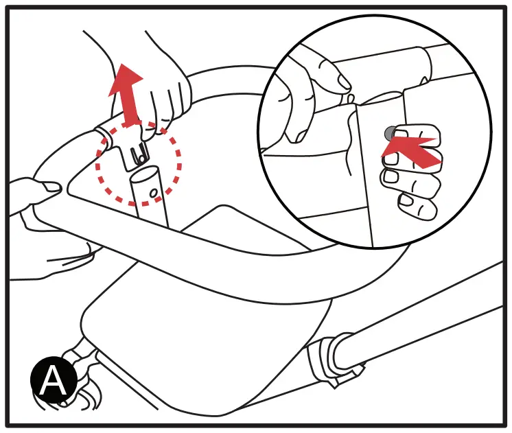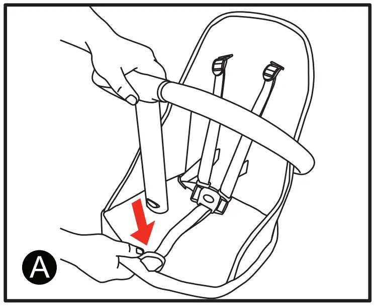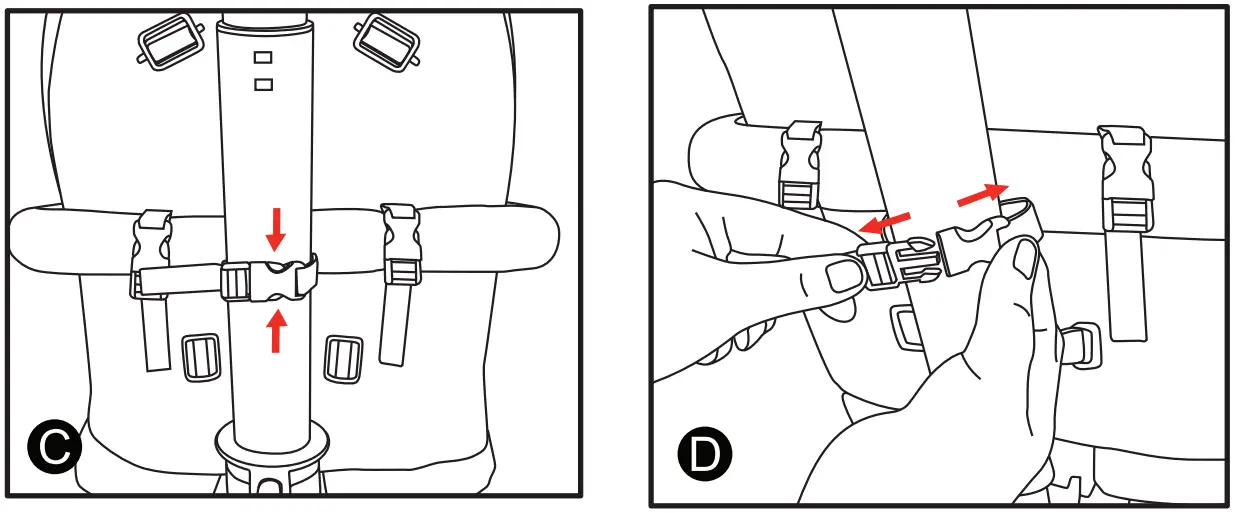 Buckle the backrest to guard rail using the two buckles as shown in figure B and C.