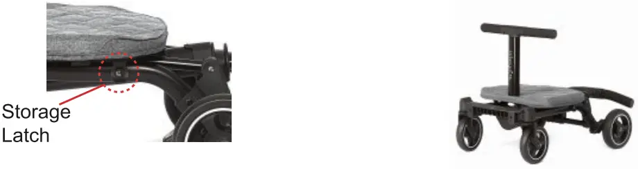 Detach the guard rail, fold the Coast Rider (as shown on page 7) and ensure that the storage latch is engaged. Next, insert the handle for the TBar into the seat. The Coast Rider should look like the figure below.