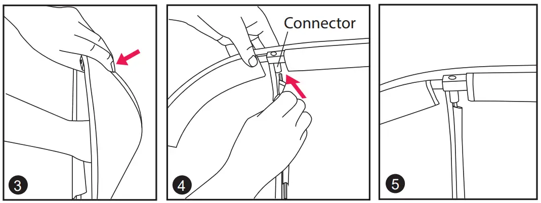 - Hold the support bar from the back of the connector (Fig 3), then put the end of the support bar into the connector with another hand (Fig 4 & 5).