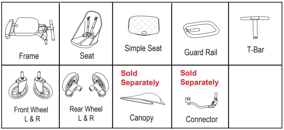 - TO PREVENT A HAZARDOUS, UNSTABLE CONDITION, never place purses, shoppingbags, parcels or accessory items on the handle (other than approved stroller bags). Never place anything on the canopy.