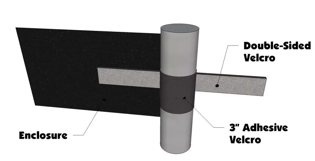 Be sure to read these instructions thoroughly before opening and installing the enclosure. The installation is best done when the temperature is 70 degrees F. or warmer. The temperature affects the adhesive Velcro, if conditions prevent installing in warmer weather it helps to store the adhesive Velcro at room temperature prior to installation.
