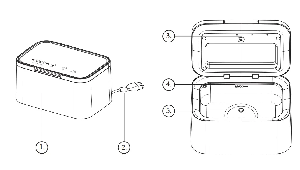 When using the Ultrasonic function, always make sure that the tank is sufficiently filled to cover the product while not exceeding the MAX level. During operation, when the lid is raised the UV-C light will suspend while the timer and the ultrasonic cleaning process continues. Close the lid for the UV-C light to resume.