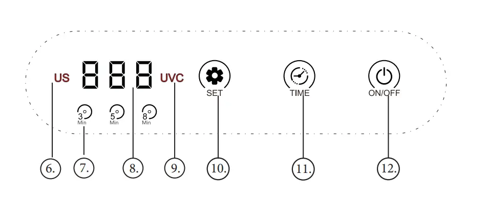 UV-C sterilisation: Dry, Wet When only using the UV-C function to sterilize items, there is no need to fill the tank with water. During operation, when the lid is raised the UV-C light will suspend while the timer keeps running. Close the lid for the UV-C light to turn back on and resume sterilisation operation.