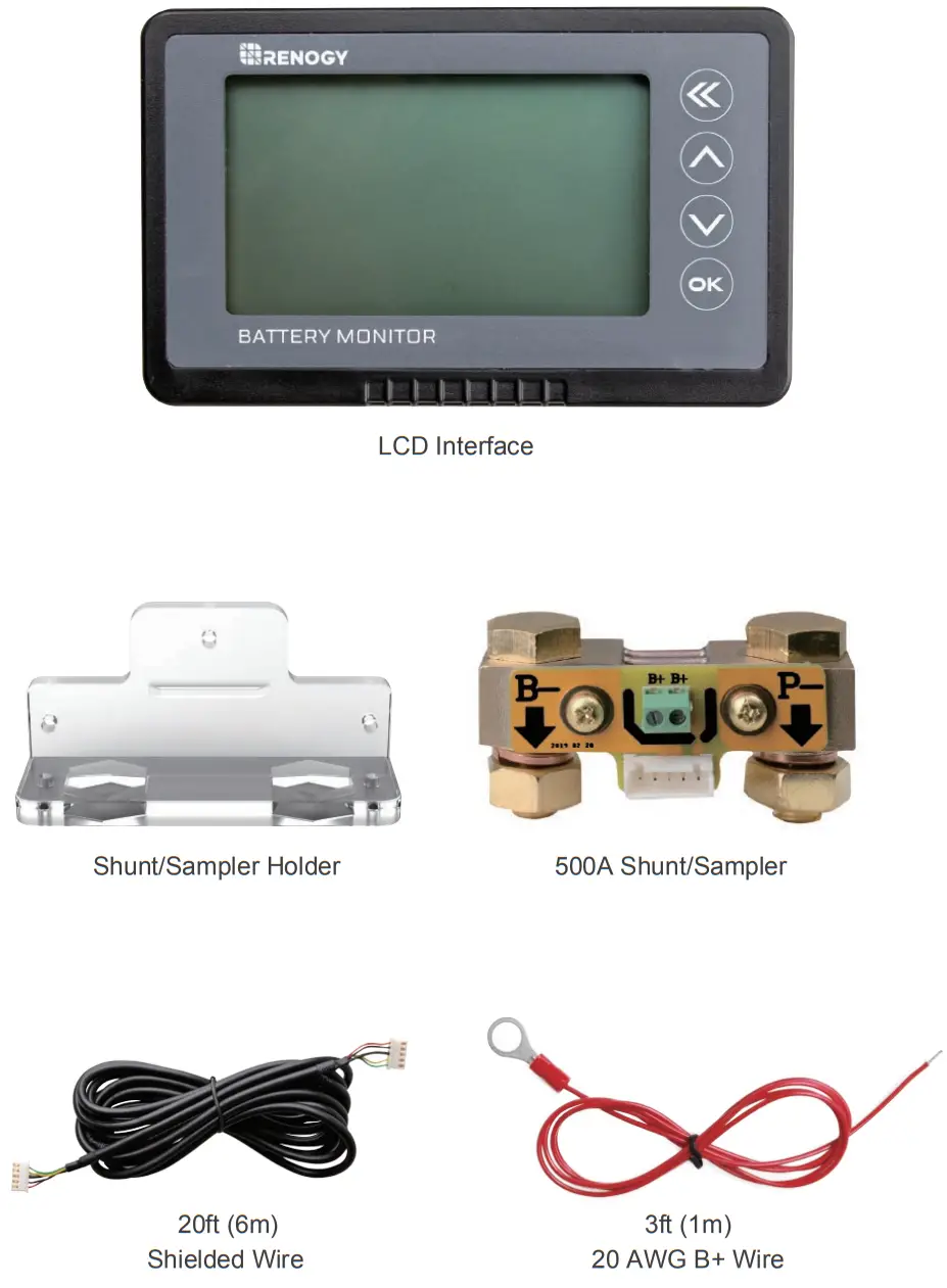 The Renogy Battery Monitor is a high-precision device (also known as a coulometer), which can test the voltage, current, and capacity of a battery to help users know the state of charge at any time. The Renogy Battery Monitor has a memory function that allows users to set a low voltage capacity alarm. It is suitable for mobile and portable equipment, e-bike, motorcycles, electric wheelchairs, and so on.