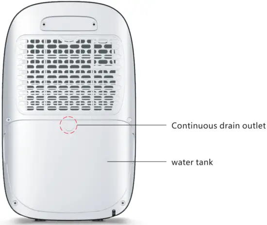 - In the need to use the external continuous drainage, use the tools such as knives or pliers to remove the plastic from the water tank continuously, and then insert the hose to realize the continuous drainage function;The outlet of water pipe should not be lower than 10cm for continuous drainage outlet, so as to ensure smooth drainage.