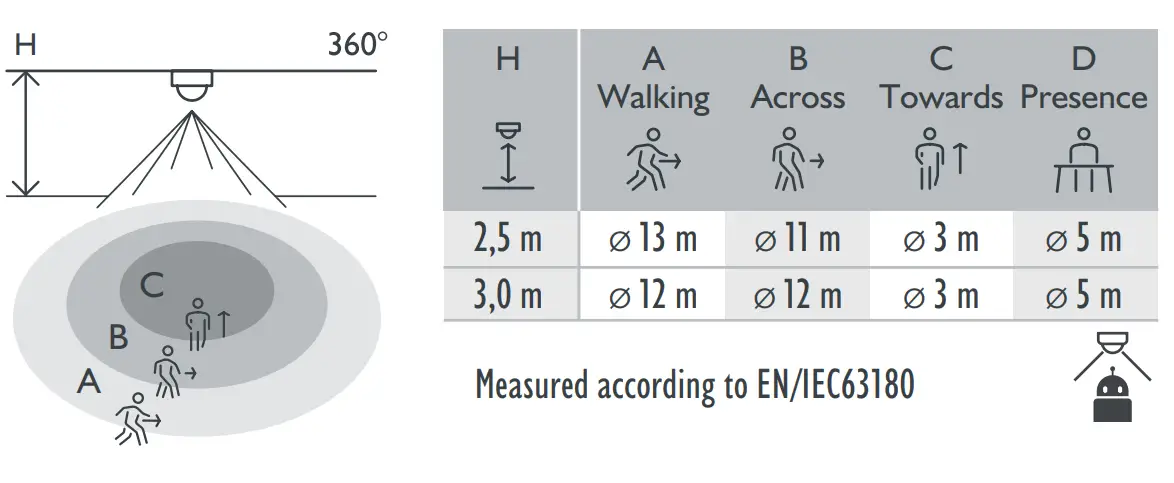 | Detection range (PIR) | Ø 12 m from a height of 3 m |