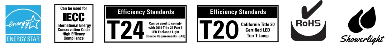 - Can be used for State of California Title 24 high efficacy luminaire compliance, reference the California Energy Commission Title 20 Appliance Efficiency Database for current listings.