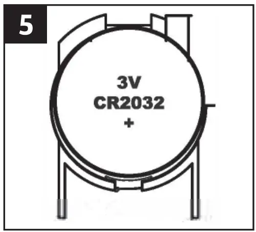 - Put the positive terminal of the new battery under the positive symbol and press the battery in place. Double-check that the battery is inserted with the correct polarity.