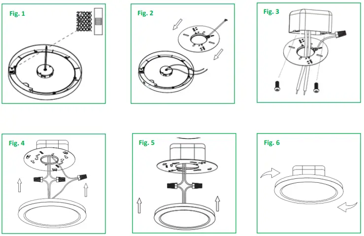 - Select desired color temperature by moving the switch on the back side. (Fig. 1)