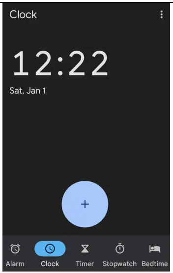 The clock app is used for time, timer function, alarm and stopwatch. It can be accessed by tapping the Clock app icon within the app drawer ![]()