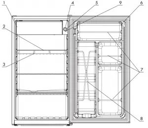 The built-in freezer compartment is designed to keep contents below 32 °F. Defrost the freezer whenever frost accumulates to a thickness of 1/8″ or more on freezer walls.