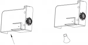 - Unscrew and remove the bottom foot from over the hinge bracket. Use a slotted screwdriver to remove the two screws attaching bracket to the cabinet. Remove bracket and replace foot. On the opposite side of the unit, remove the foot and attach bracket with the same screws. Replace foot.