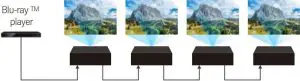 Transfers the input signal on the HDMI1 or HDBaseT terminal to another device. It allows to connect the projectors*4 in series in order to project the same images simultaneously without using an HDMI splitter or switcher product.
