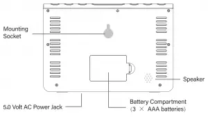 - Connect the weather station to a wall outlet using the provided 5-volt power adapter. Or Insert 3 AAA batteries (included) into the weather station. Observe the correct polarity.