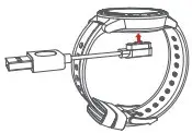 Place the magnetic charging cord on the chip at the back of the watch, and plug the charging cable into the USB port on the computer or power bank for charging. Please use a power adapter of 5V/1A; After charging for a while, a charging indication flashes at the display area. Fully charge about 2 hours.