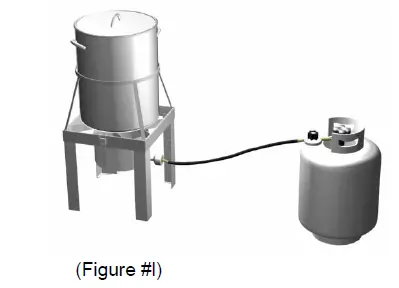 2. To prevent tipping and the fryer oventurn, the LP gas cylinder should be placed far from the burner and reach the maximum distance as 35 inches(88.9cm). See Figure #l.
