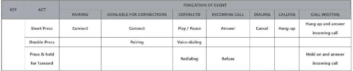 Play/Pause: Click the multi-function key of the host headset