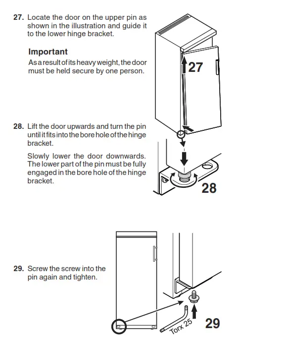 Changing the door hinges must be done by two people.