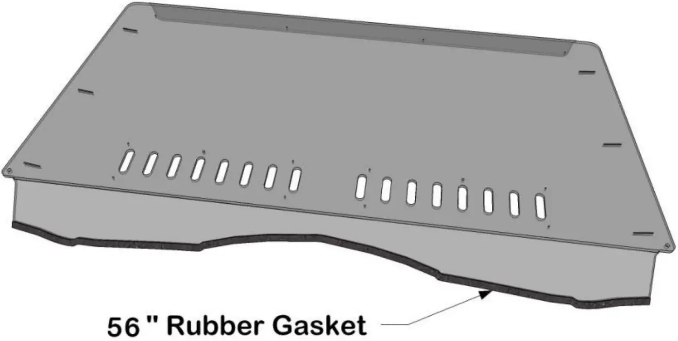- Start by pulling it out of the box and find a clean area to lay it down and install the hardware. Begin by peeling off the protective film. Next take the 56” piece of rubber gasket and starting at one end firmly place across the bottom of the windshield. You may need to trim off excess gasket. The diagram below show where to install the gasket.