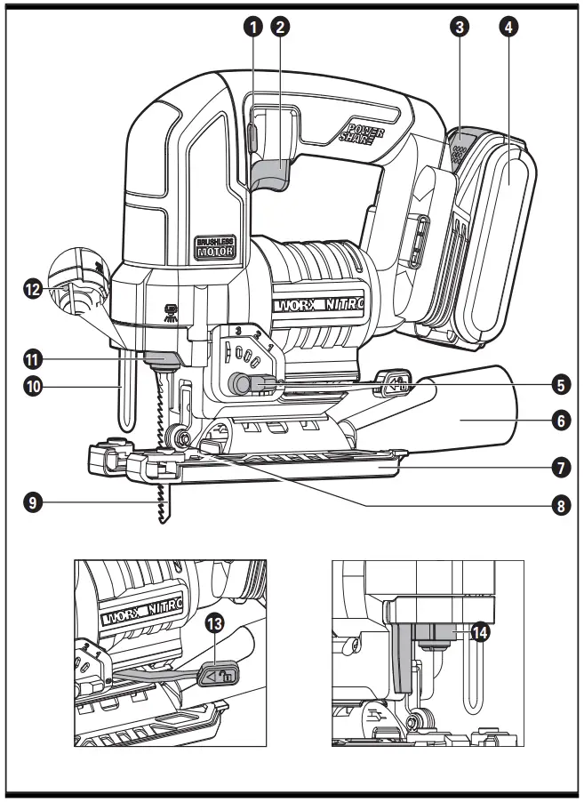 WORX WX542 20V Cordless Brushless Jigsaw