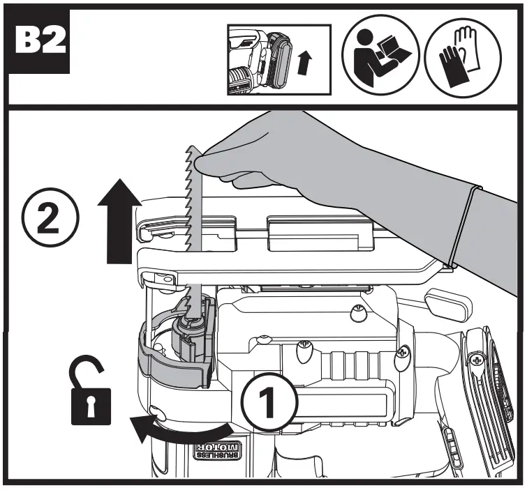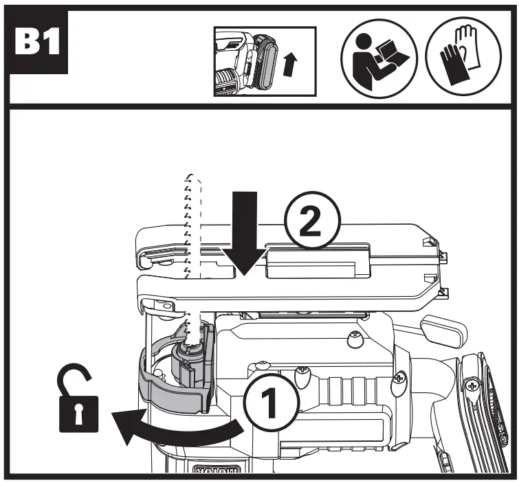 | Blade Removal NOTE: Hold the blade with one hand when remove the blade. ![]() | See Fig. B2 |