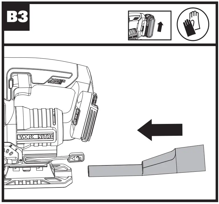 - Hold jig saw by insulated gripping surfaces, when performing an operation where the cutting accessory may contact hidden wiring. Cutting accessory contacting a “live” wire may make exposed metal parts of the power tool “live” and could give the operator an electric shock.