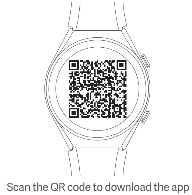 - Press and hold the function bu on to turn on the watch. Scan the QR code displayed on the watch with your phone, then download and install the app. You can also download and install the app from app stores.