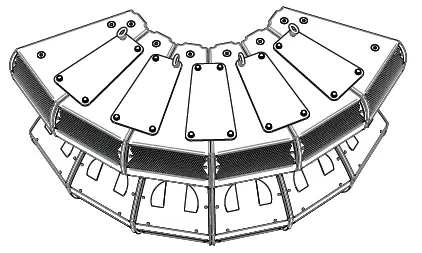 For the horizontal array lifting devices must be used, certified for the weight to hang (the eyebolts shown in the following figure are just an example). At least one lifting devices for every two loudspeakers shall be guaranteed with alternate speakers (as shown in the figure below) in order to distribute the load, with relative chain (in this case it is possible to make a complete circle of loudspeakers and therefore have a coverage of 360°). Please note that is very important to consider also the inclination of the array.