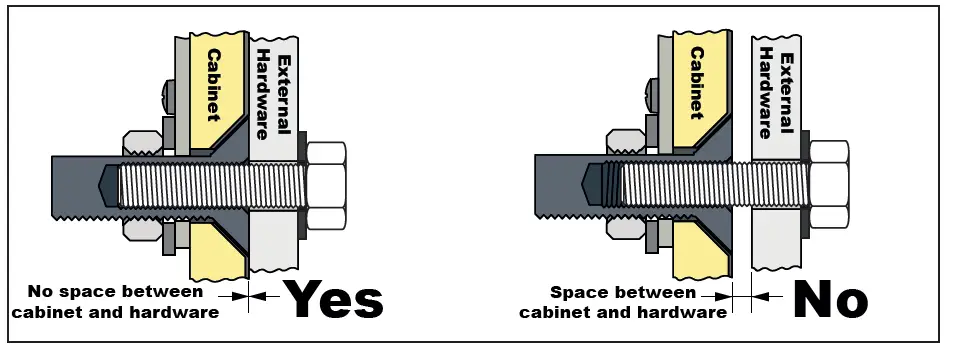 The external hardware must be placed in contact with the cabinet. Tightening the screw with hardware that is not in contact with the enclosure may result in damage to the rigging points or to the cabinet if excessive torque is applied.