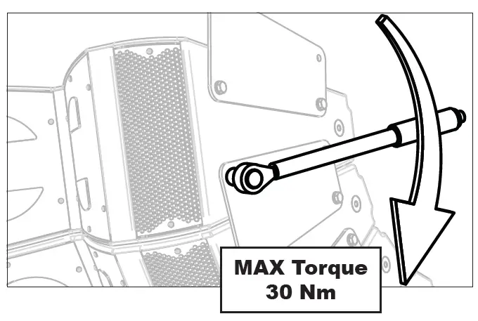 Tightening the bolts with higher or not controlled torque might result in damages and risk for the safety.