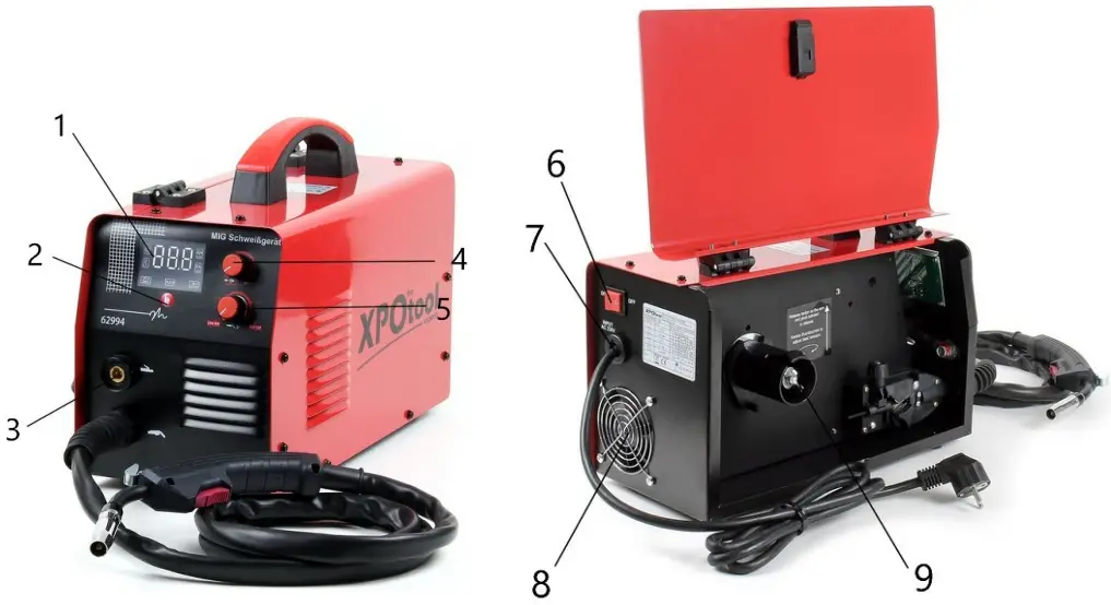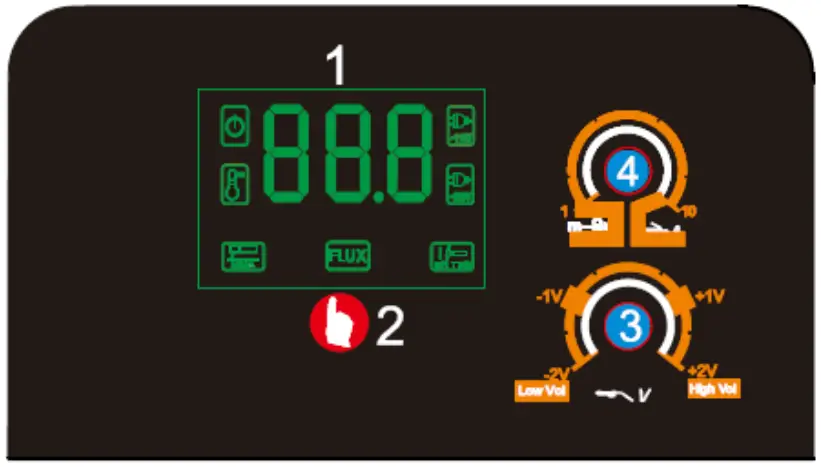 | 2 | Functional switch | 4 | Wire-feed control / current regulation |