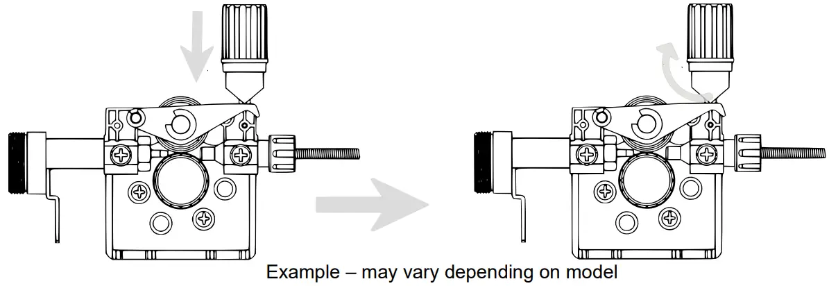 - Open the pressure control lever to open the wire-feed control drive.