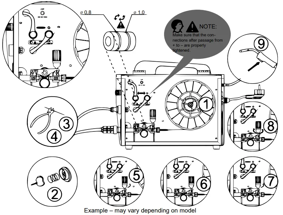 - The machine reaches its best performance with 0.8 mm diameter welding wires. However, 0.6 mm, 0.9 mm, or 1.0 mm diameter solid or filler wires can also be used for welding. Nevertheless, please note that this machine is only suitable for welding with steel wires.