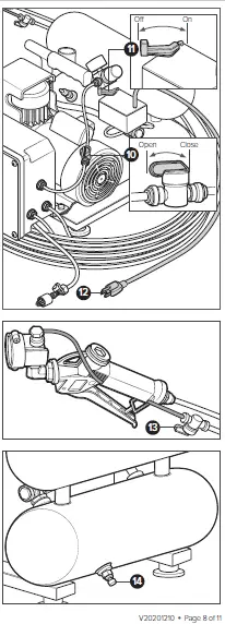 Once pressure is relieved, release the trigger handle and close the air shut-off valve at the trigger gun. - Depressurize and drain the air compressor tank by opening the drain valve on the compressor tank.